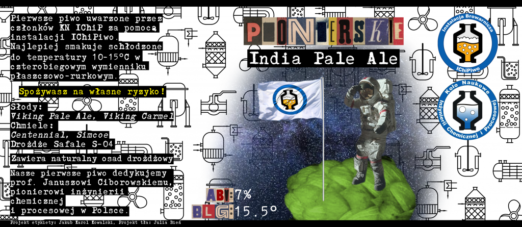 Pierwszym piwem uwarzonym za pomocą instalacji było India Pale Ale (IPA) – jasne piwo górnej fermentacji z mocnym chmielowym aromatem i goryczką. Nosi ono nazwę „Pionierskie”, a jego degustacja odbyła się 24 października 2019 roku. Piwo to zadedykowane zostało prof. Januszowi Ciborowskiemu – twórcy polskiej inżynierii chemicznej oraz założycielowi Wydziału Inżynierii Chemicznej i Procesowej.