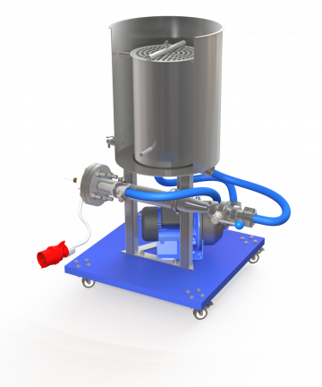 Etap zacierania polega na umieszczeniu ześrutowanego słodu wewnątrz wkładu zaciernego. Jest nim rura o średnicy 250 mm zamknięta obustronnie płytami sitowymi. Wkład ten zostaje wstawiony do zbiornika z wodą podgrzaną do określonej temperatury. Pod kotłem stojącym na stalowej ramie znajduje się pompa wymuszające cyrkulację cieczy. Za pompą zainstalowano grzałkę której prosty układ regulacji pozwala na szybkie i precyzyjne sterowanie temperaturą procesu. Zawór motylkowy zamontowany za grzałką umożliwia regulację przepływu cieczy. Brzeczka jest podawana bezpośrednio pod złoże słodu, a następnie, po przemyciu złoża, przelewa się górą do przestrzeni pomiędzy ściankami kotła i wkładu zaciernego. Temperatura procesu jest dobierana na podstawie największej aktywności enzymów mających wytworzyć pożądane produkty.