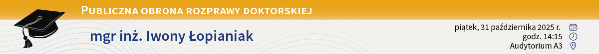 Publiczna obrona doktoratu: mgr inż. Iwona Łopianiak14:15 - 16:15 |